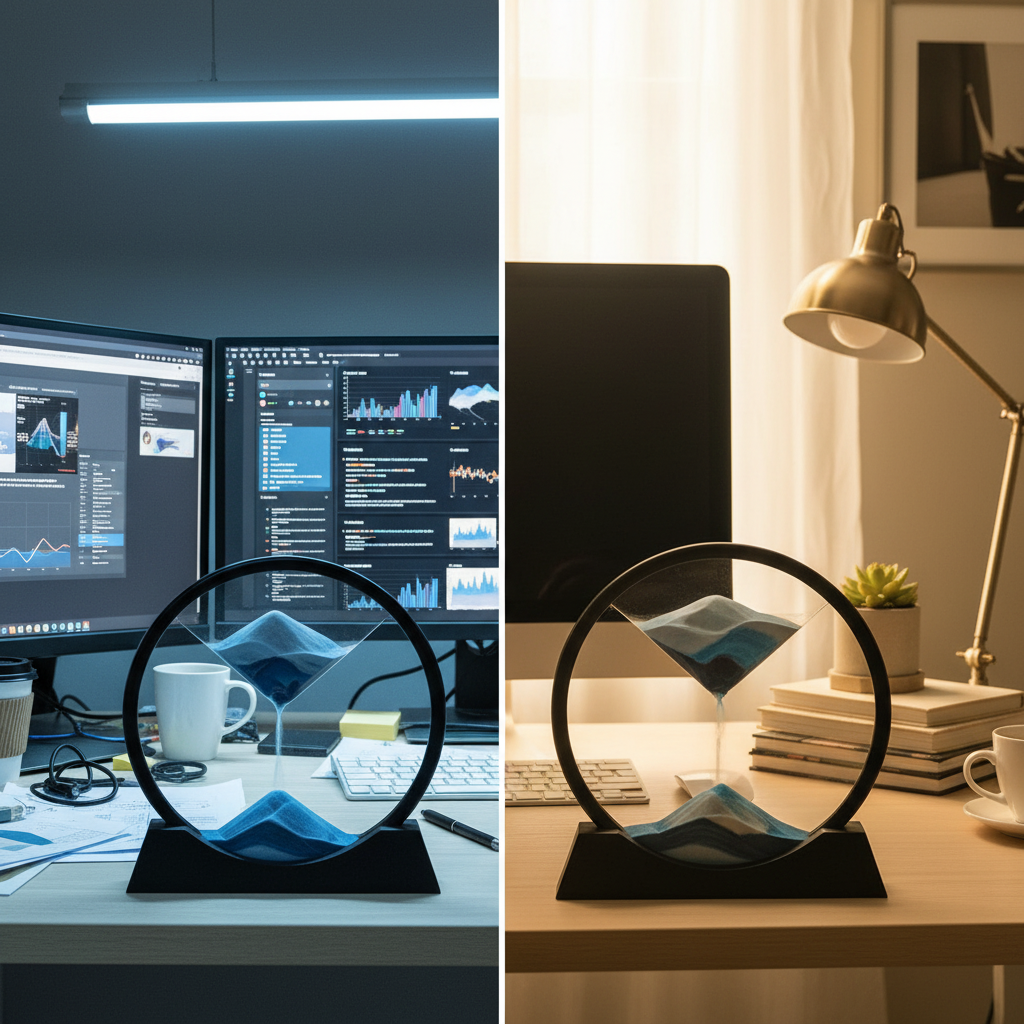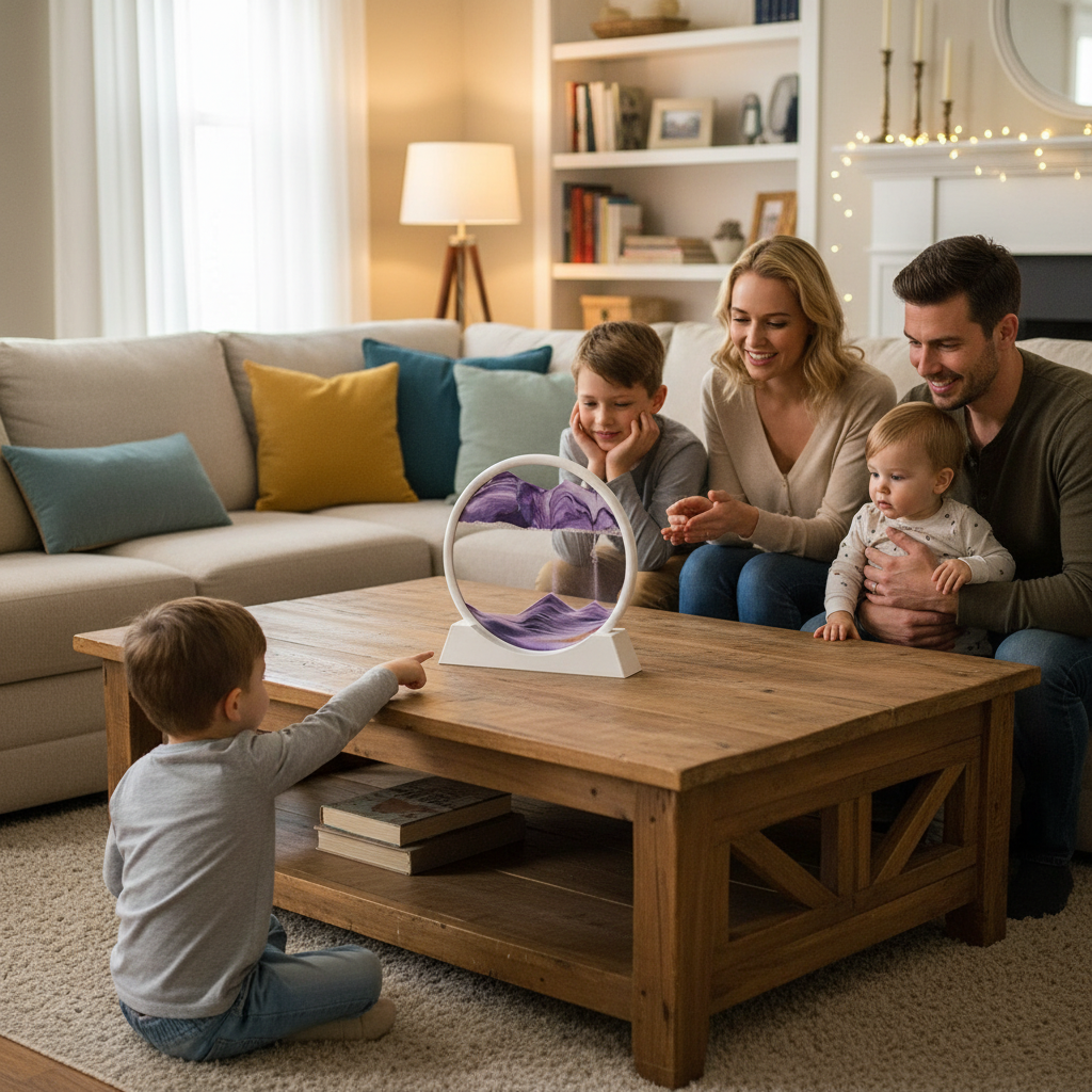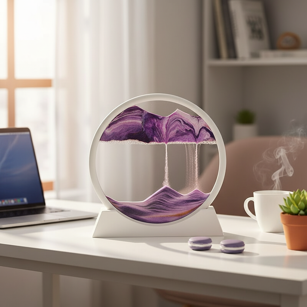 Our Peacy Art will help you feel more relaxed every time you look at it. Just turn it around to witness a mesmerizing flow of sand grains, offering beautiful shapes and resulting in a completely original piece of art.